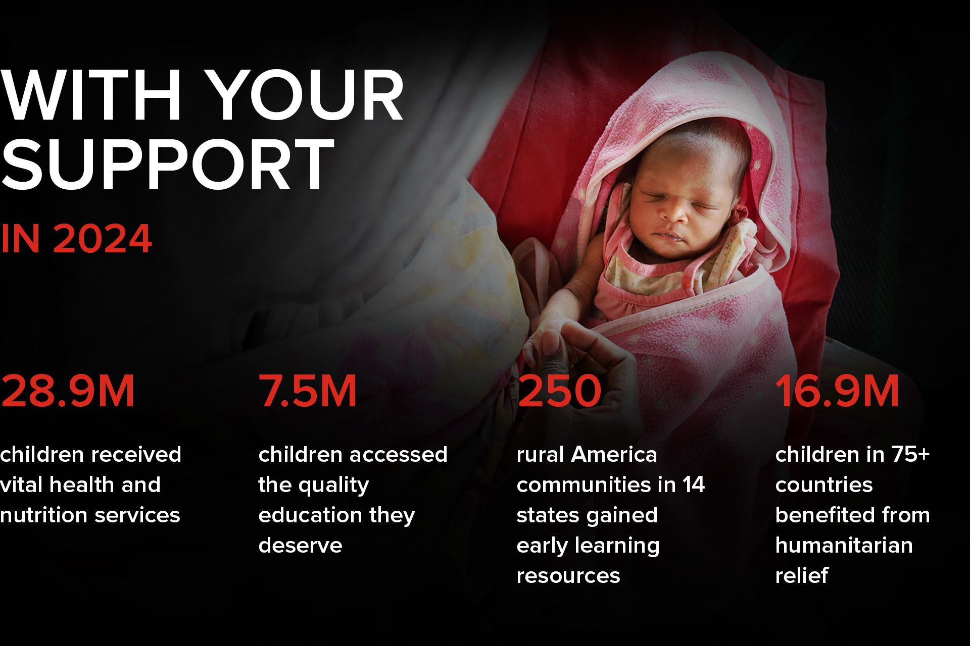 Your partnership provides us the flexibility to direct funds where they’re needed most to save lives, rise to new challenges and fuel progress for children. Our shared commitment to children is stronger than ever!